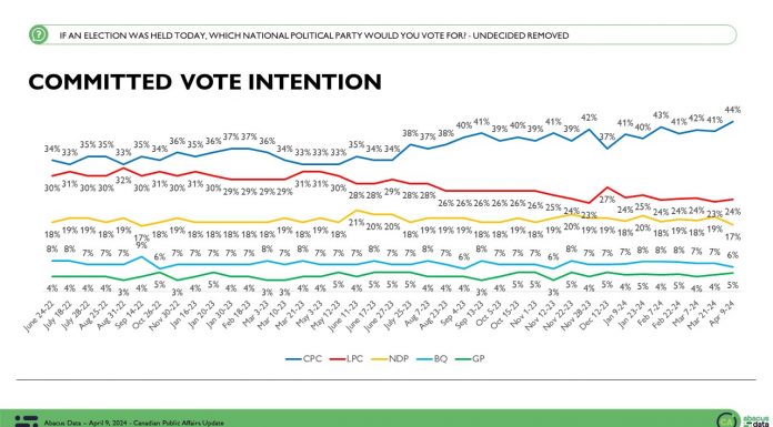 Conservatives hold a strong lead in the polls nationwide, but trail the Bloc Québécois in Quebec
