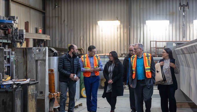 The federal Conservative leader toured a couple of local businesses before heading to the next stop on his Northern tour