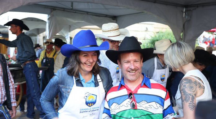 As is tradition for many politicians, Premier Danielle Smith hosted a pancake breakfast in Calgary’s downtown to celebrate Stampede festivities Monday.